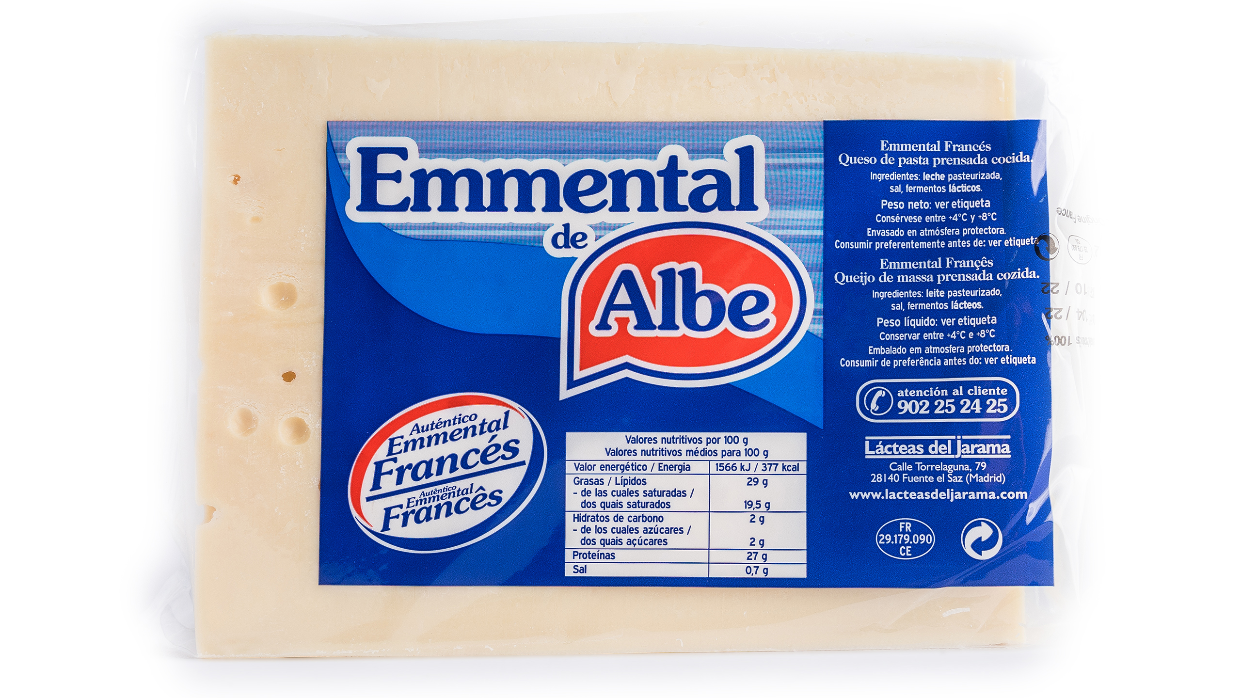 Un queso característico por su sabor y por sus ojos (agujeros creados en el transcurso de la maduración). Se utiliza en muchas elaboraciones como pizzas, hamburguesas, rellenos, ensaladas….