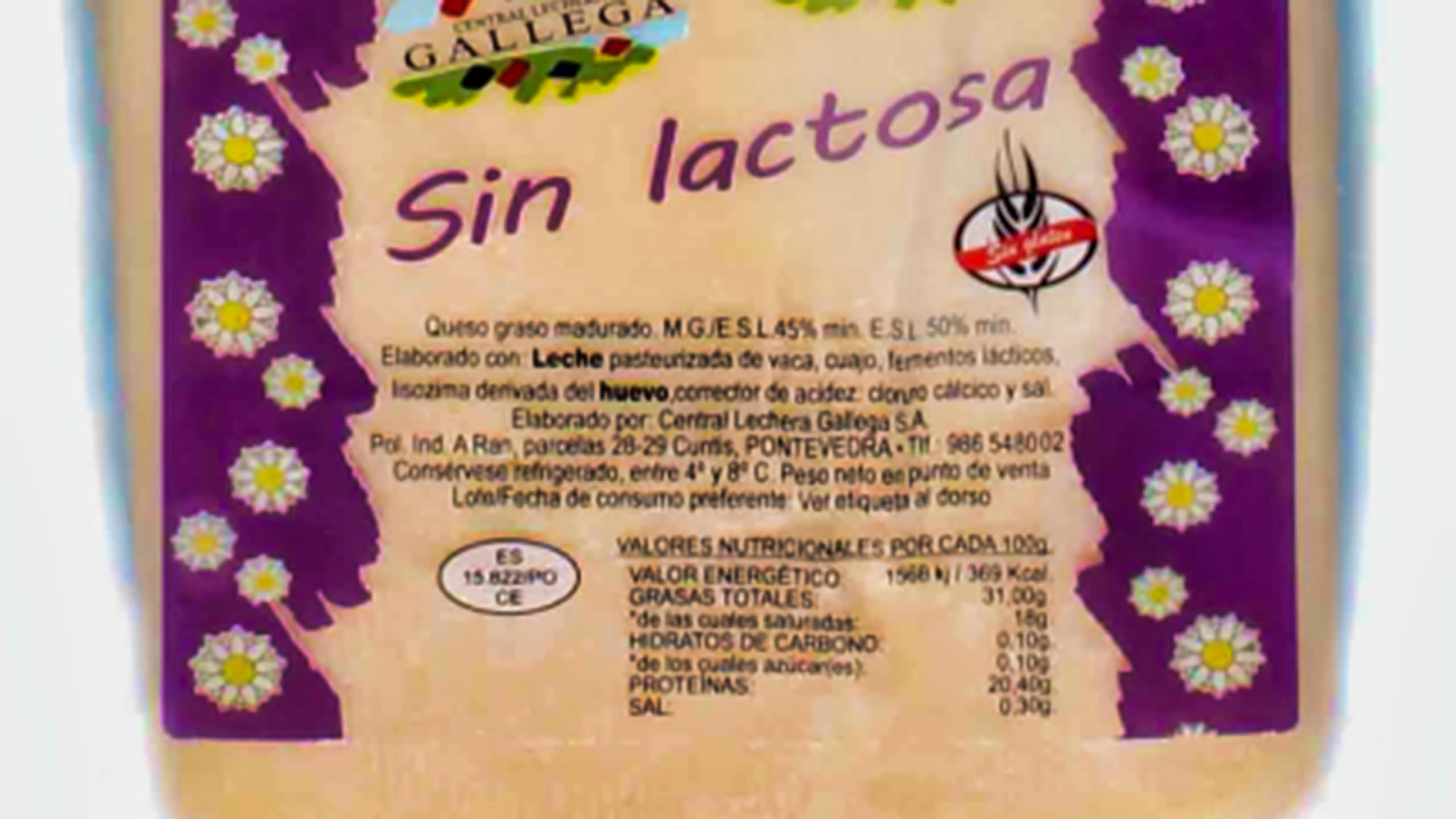 Tipo de leche: leche pasteurizada de vaca