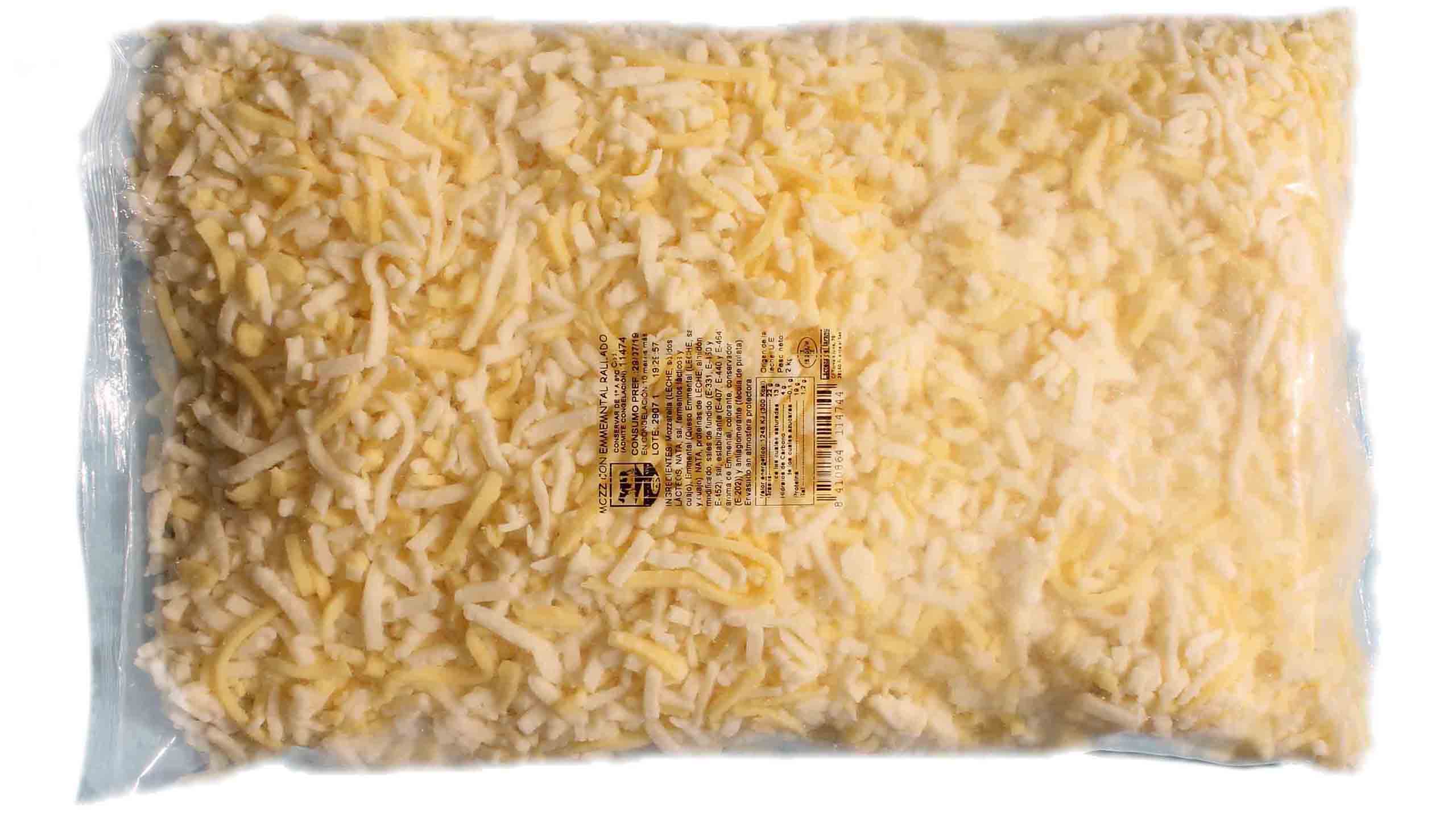 Mezcla especial de mozzarella vaca rallada con emental rallado. Aporta sabor a emental a la pizza manteniendo hilado y cremosidad de mozzarellas.